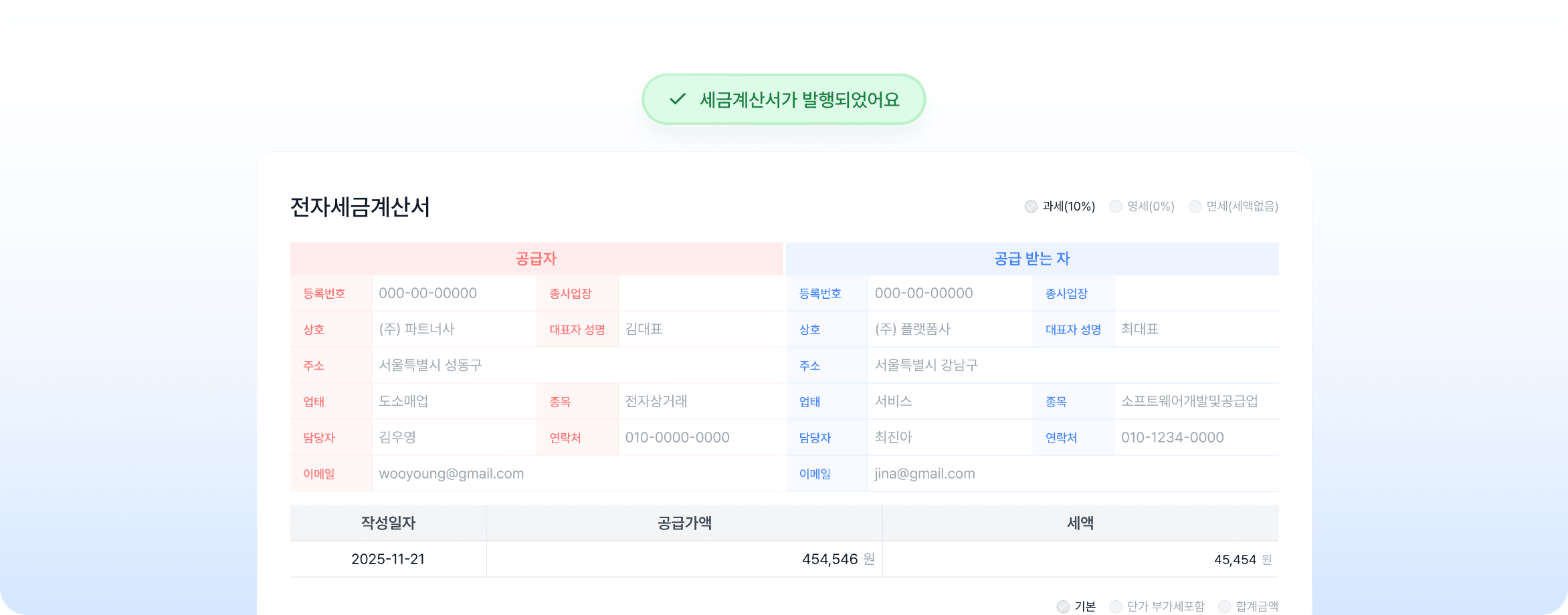 세금계산서 발행 자동화가